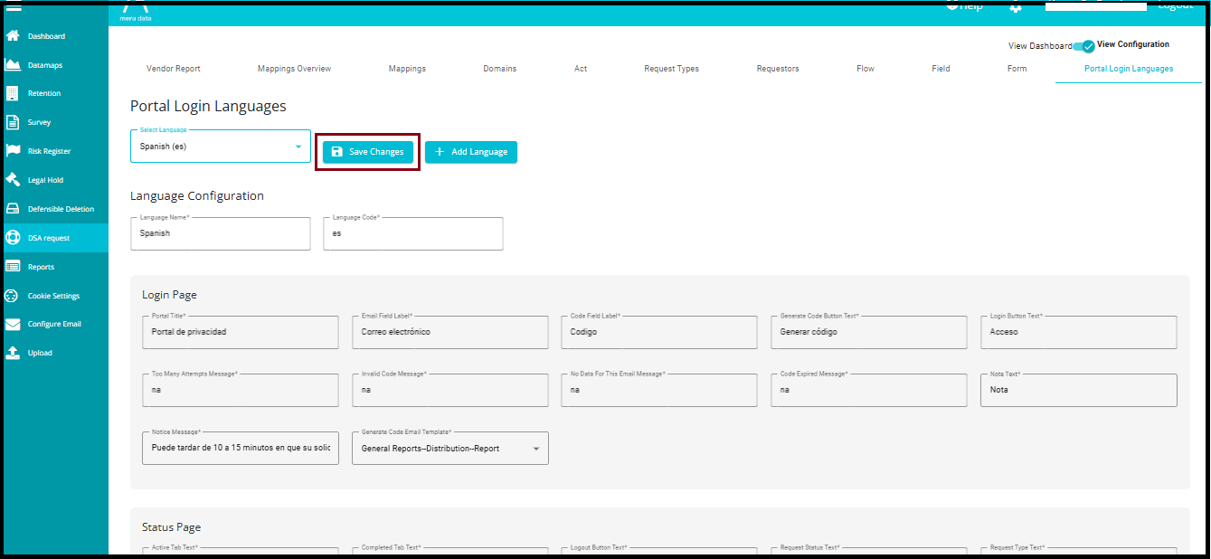 The Portal Login Languages feature allows users to switch the language of the DSAR (Data Subject Access Request) portal login interface, making it easier for individuals to navigate and understand the content in their preferred language. This is especially helpful when users want to check the status of their submitted requests. By enabling multilingual support, the portal ensures that users from different linguistic backgrounds can access and interpret their request information without confusion or the need for external translation tools.